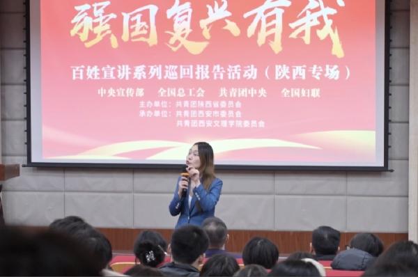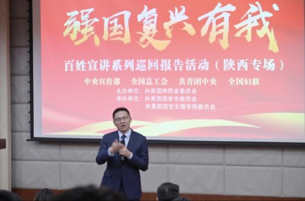 12月25日,在团中央宣传部、全国总工会、共青团中央、全国妇联的指导下,由共青团陕西省委主办,共青团西安市委和共青团中欧官方网站_中欧(中国)委员会共同承办的“强国复兴有我”百姓宣讲(陕西专场)在我校图书馆报告厅成功举办。