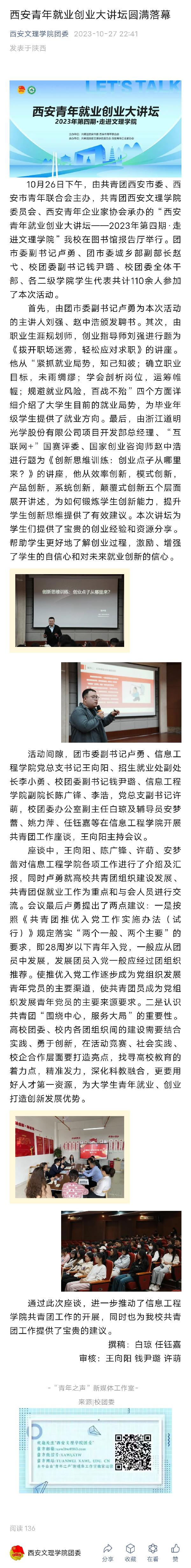 西安青年就业创业大讲坛圆满落幕