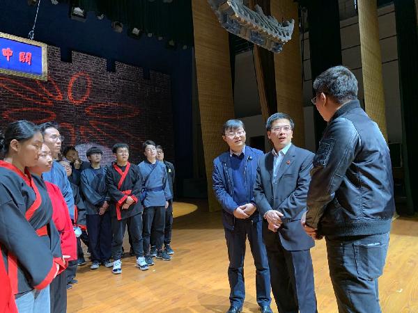 话剧排练期间,校长陈刚、校务委员郭瑞等校领导莅临排练现场,亲切慰问演职人员,给学生们加油打气,并预祝演出圆满成功。