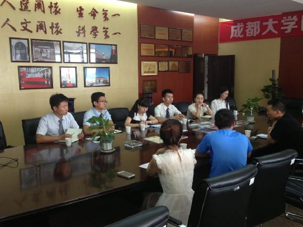 成都大学是成都市人民政府主办的唯一一所全日制普通本科院校,实行省市共建、以市为主的办学体制。学校始建于1978年,先后由成都教育学院、成都幼儿师范学校、成都卫生学校和成都铁路中心医院(三级甲等医院)合并而成。学校秉承自爱、自修、自尊、自强的校训,发扬求真务实、自强不息的精神,以服务成都经济社会发展为己任,以培养高素质应用型人才为目标,不断深化教学改革,提高教育质量,加快推进创建国内知名城市型综合大学步伐。    此次“青春事业,相携共进”赴成都大学工作调研实践活动得到了成都大学学工部、团委的大力支持,学工部副部长徐庆荣,校团委书记李维热情接待我校实践队员,在座谈中,双方代表就科技创新、组织发展、思想引领、学生会社团建设、艺术团等方面进行了深入的交流和探讨,令我校实践队员们感触最深的是,成都大学在思想引领方面的品牌工程“时事月月谈”以及在科技创新方面的“学生发展与素质提升工程”。在调研期间,实践队员们参观了成都大学美丽的校园、图书馆、大学生活动中心以及科创杯学生课外学术作品展览和电子创新实验室。