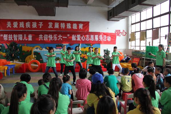据我校“弘扬五四精神,奉献火热青春”纪念五四运动95周年系列活动安排,为了深入了解智障儿童的学习生活状况,向智障儿童献爱心、送温暖,5月23日下午,我校学生会、幼儿师范学院的青年志愿者们赴西安市心心幼儿园开展“帮扶智障儿童,共迎快乐六一”献爱心志愿服务活动。