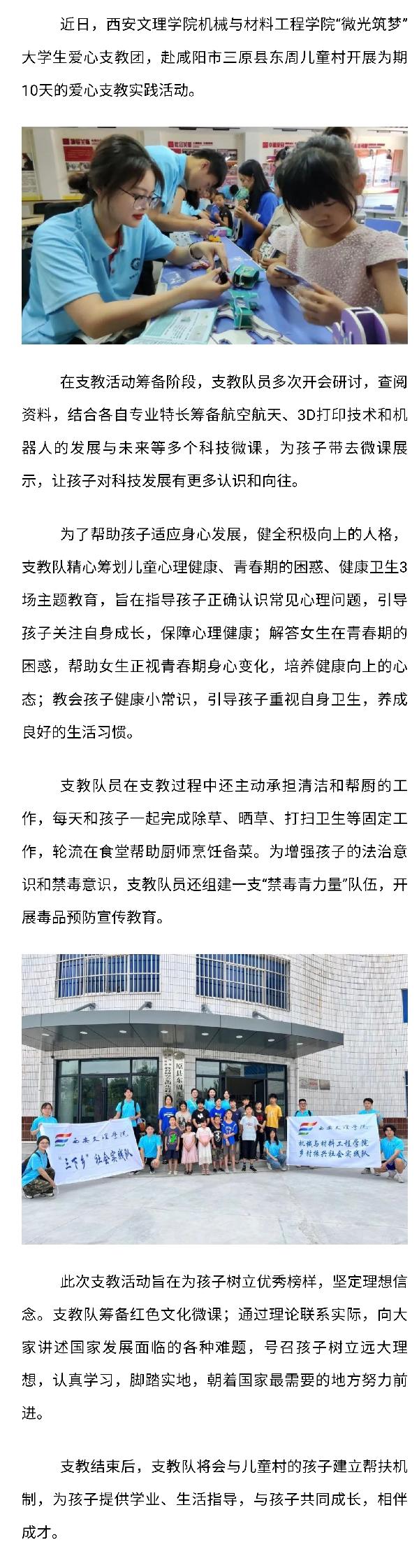 社会实践 | “微光筑梦”——中欧官方网站_中欧(中国)机械与材料工程学院开展爱心支教实践活动