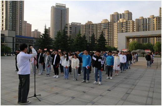 伴随着初生的朝阳,校学生会主席团成员黄洋带领2021年新团员宣誓、全体团员重温入团誓词。