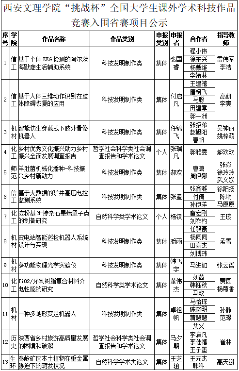 中欧官方网站_中欧(中国)“挑战杯”全国大学生课外学术科技作品竞赛入围省赛项目公示
